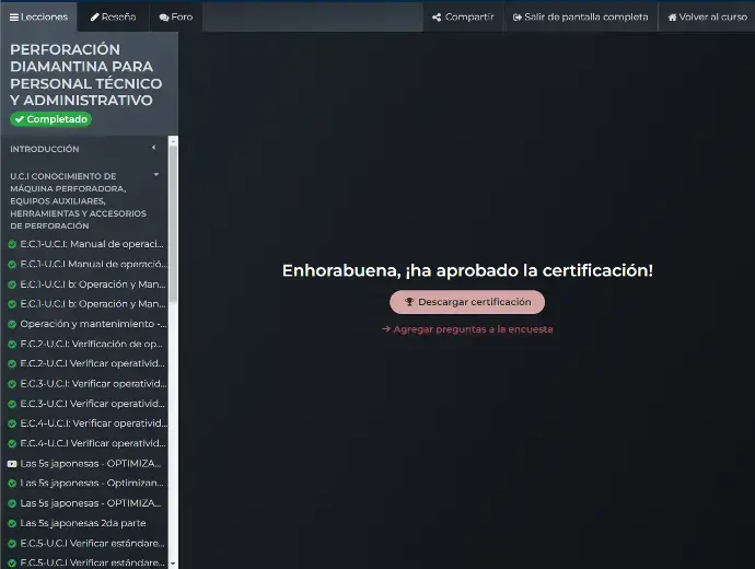 | 3 | SUPERVISOR DE OPERACIONES DE PERFORACIÓN DIAMANTINA 2.0 | PERFORACIÓN DIAMANTINA | ONLINE |